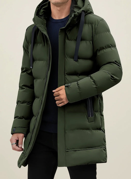 Adrian Winter Men's Long Down Jacket With Hood Thick Quilted Insulation For Extreme Cold Weather