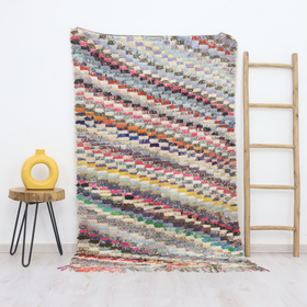 - Pattern: Boucherouite — vibrant, irregular patchwork typical of Berber weaving traditions.