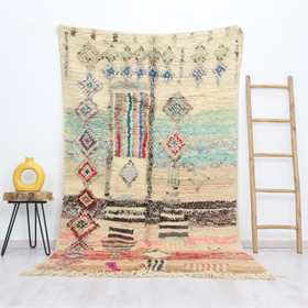 A singular moroccan rug, meticulously woven in the small city of Boujaad in Morocco's Chaouia-Ouardigha region. Size: 4'9" x 8'3" (150cm x 255cm).
