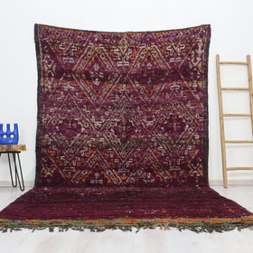 Introducing the Arrawen Vintage Moroccan Rug, a hand-knotted treasure from Morocco’s Middle Atlas range. Measuring 6'2" x 11'2" (190 cm x 340 cm), this rug makes a bold statement with a rich purple field that brings warmth and sophistication to any space. Every thread tells a story—carefully woven by the skilled Zemmour tribes, then professionally cleaned to refresh its beauty while preserving the vintage patina that only time can confer.