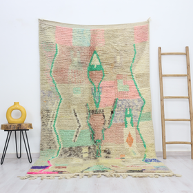 A singular moroccan rug, meticulously woven in the small city of Boujaad in Morocco's Chaouia-Ouardigha region. Size: 4'9" x 8'3" (150 cm x 253 cm).
