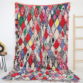 An unparalleled vintage masterpiece, carefully crafted by Berber Tribes in the Boucherouite style using upcycled textiles. Measurements: 4'9"X 8'7" (148 cm x 266 cm),