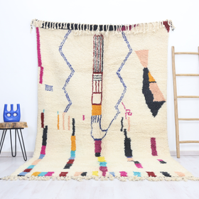 It measures 5'8" x 9'1" (176 cm x 276 cm), and like all handcrafted pieces, it bears natural inconsistencies