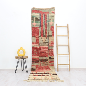 A singular moroccan rug, meticulously woven in the small city of Boujaad in Morocco's Chaouia-Ouardigha region. Size: 2'4" x 9'7" (72 cm x 295 cm).