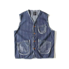 From Wavlynn, this Indigo Striped Denim Vest rethinks heritage workwear for the modern wardrobe. Built for those who notice craftsmanship in every stitch, it delivers rugged texture and versatile layering for fall looks.