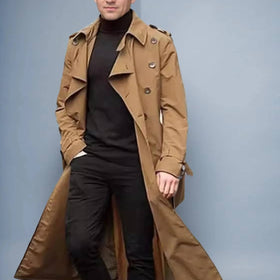 Men's Long Trench Coat With Timeless Double Breasted Style For All Weather Comfort