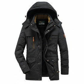 This men's hooded parka jacket offers a blend of military-inspired style and practical design. With its mid-length cut, full zip closure, and multiple pockets, this jacket is built for both urban environments and outdoor adventures. Stay prepared and stylish with this versatile outerwear piece.