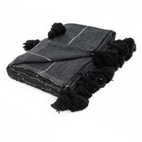 Moroccan Pom Pom Blanket - Black & Silver