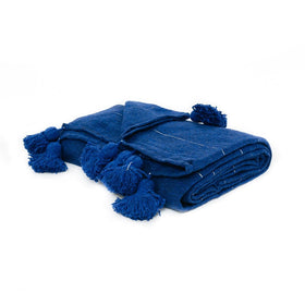 Moroccan Pom Pom Blanket - Blue & Silver