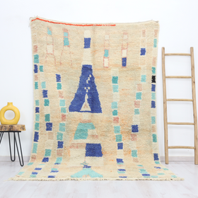 Introducing the Myessa Boujaad Moroccan Rug—an authentic hand-knotted treasure woven in Boujaad, a small city in Morocco's Chaouia-Ouardigha region. Sized at 5'2" x 8'5" (160 cm x 260 cm), this singular piece brings a substantiated sense of craft and place to your space. After careful expert cleaning, it retains the time-worn marks and the distinct character of handcrafted pieces, offering warmth and personality that mass-produced rugs can’t match.