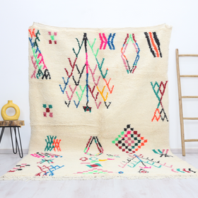 This unique rug, singular in its design, was intricately hand-knotted by the Azilal tribes nestled in Morocco's Middle Atlas mountains.